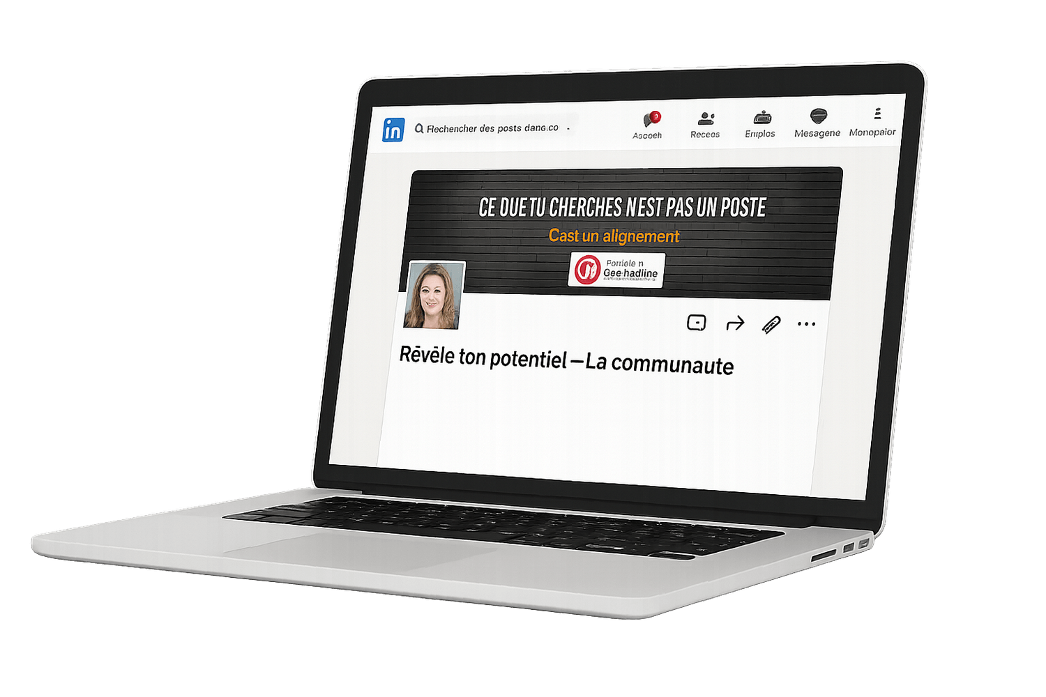 Une communauté bienveillante sur LinkedIn pour échanger, partager et évoluer ensemble, avec une invitation à des sessions de coaching en direct chaque semaine.